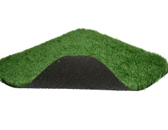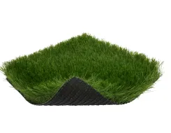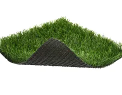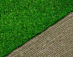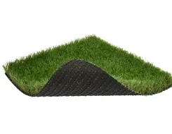 Для этой цели используется в основном незасыпной вид полимерной травы с высотой ворса от 5 до 35 мм. Процесс укладки прост. Грунт предварительно выравнивается. Желательно сделать дренажные канавки для стока дождевой воды. Внахлест выкладывается подложка из геотекстиля или другого материала, а на нее раскатывается рулонное газонное полотно. Места стыков закрепляются специальным клеем и шовной лентой.
