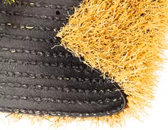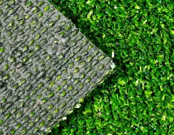 Для этой цели используется в основном незасыпной вид полимерной травы с высотой ворса от 5 до 35 мм. Процесс укладки прост. Грунт предварительно выравнивается. Желательно сделать дренажные канавки для стока дождевой воды. Внахлест выкладывается подложка из геотекстиля или другого материала, а на нее раскатывается рулонное газонное полотно. Места стыков закрепляются специальным клеем и шовной лентой.
