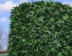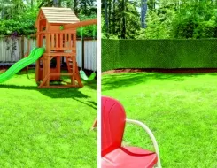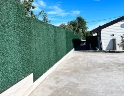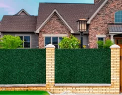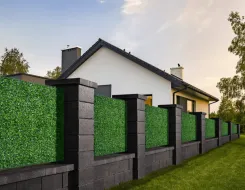 Заборы из искусственного газона – комфортная и практичная альтернатива для «натуральных» зеленых заборов. Последние требуют очень больших усилий и при создании и при дальнейшем поддержании и уходе. Технически, забор из искусственной травы представляет из себя каркас с «натянутым» полотном синтетического газона.